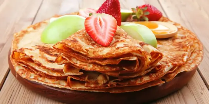 De grandes crêpes toutes fines, légères, à garnir de morceaux de fruits frais, d’un filet de sirop ou d’un peu de pâte à tartiner SKILUP. Max adore les préparer pour les autres, en les roulant comme des petits cadeaux à offrir.