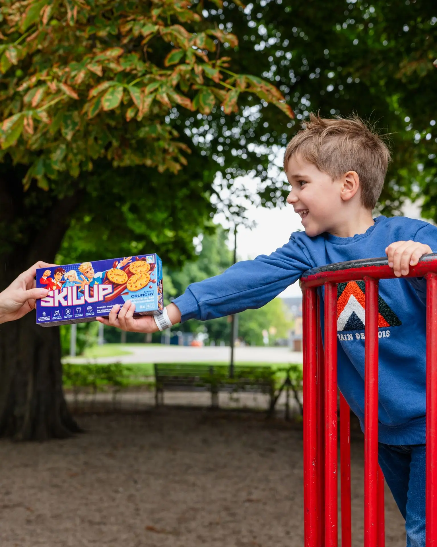 SKILUP, c’est l’aboutissement de mon parcours, mais aussi un nouveau départ : une marque pour les enfants, pensée avec le cœur et avec du sens. Des goûters gourmands, fun et sains, qui nourrissent le corps et la confiance en soi. Et un univers qui donne envie d’oser, de croire en ses capacités et de se dépasser.